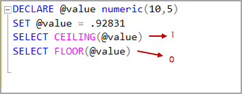Sql server round ceiling and floor examples for decimal numeric and float data types.
